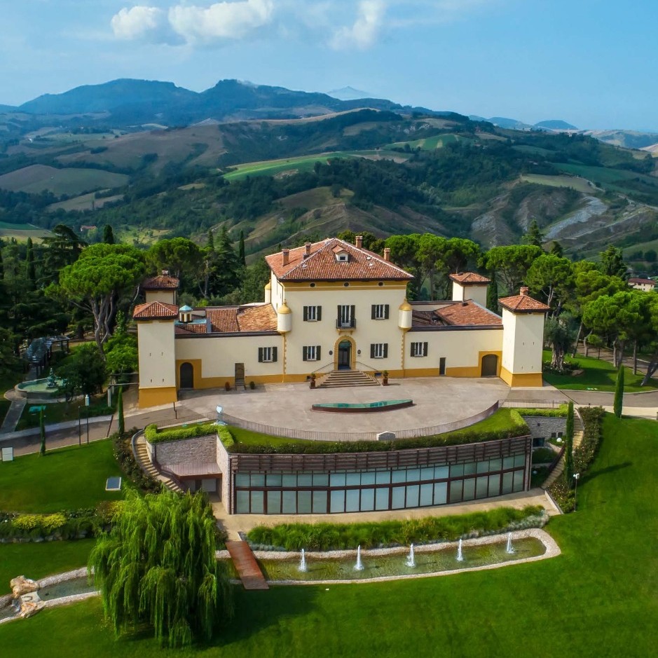 I kullarna utanför Bologna ligger Palazzo di Varignana, omgivet av vinodlingar, olivlundar och det öppna landskap som kännetecknar Emilia-Romagna.